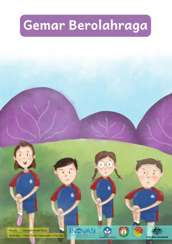Buku bacaan anak tentang berolahraga yang kembangkan oleh program INOVASI bekerjasama dengan Dinas Pendidikan dan Kebudayaann Kabupaten Sumba Barat Daya, Provinsi Nusa Tenggara Timur